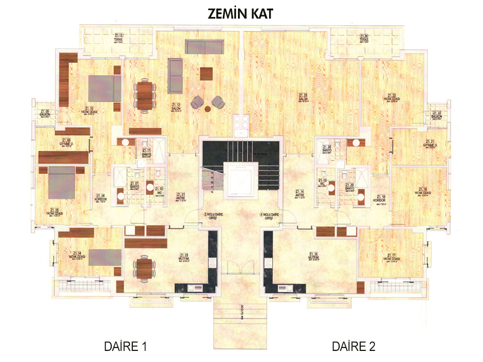 Zemin Kat: 218 m2 4+1